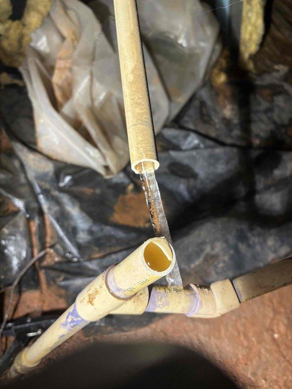 Atlanta, GA - Repaired burst pipe located inside foundation wall opposite exterior hosebib. Inspection revealed damaged PVC fittings at T-junction with visible primer residue at connection points. Replaced compromised section of piping and secured connections with appropriate PVC cement to restore proper function. Atlanta, GA - Repaired burst pipe located inside foundation wall opposite exterior hosebib. Inspection revealed damaged PVC fittings at T-junction with visible primer residue at connection points. Replaced compromised section of piping and secured connections with appropriate PVC cement to restore proper function.