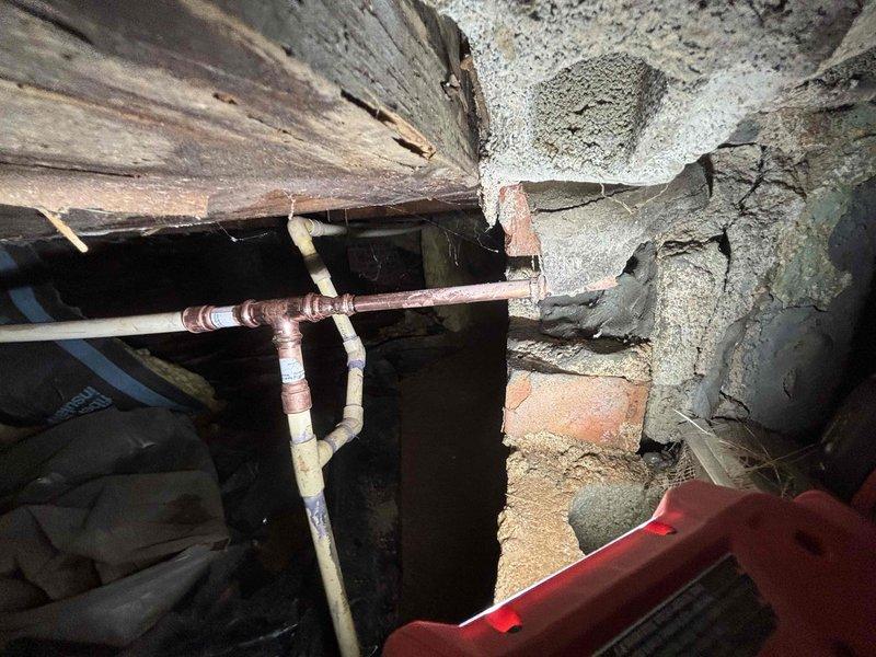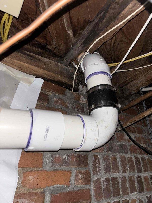 Atlanta, GA - Completed installation of PVC drainage system in basement/crawl space with proper coupling connectors. Inspected existing black insulated pipe showing signs of wear alongside yellow utility line. Documented completed work with photos showing proper installation against brick walls and integration with existing wooden structural elements. Atlanta, GA - Completed installation of PVC drainage system in basement/crawl space with proper coupling connectors. Inspected existing black insulated pipe showing signs of wear alongside yellow utility line. Documented completed work with photos showing proper installation against brick walls and integration with existing wooden structural elements.