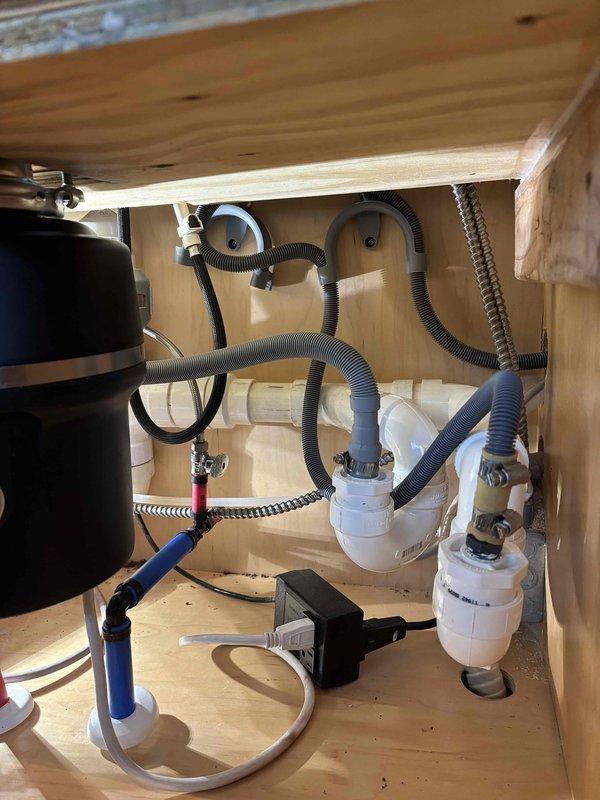 Dunwoody, GA - Responded to service call for leaking garbage disposal in older home. Upon inspection, replaced faulty garbage disposal unit with new black model and installed complete new PVC drain assembly including P-trap and connecting pipes. System tested with no leaks observed. Dunwoody, GA - Responded to service call for leaking garbage disposal in older home. Upon inspection, replaced faulty garbage disposal unit with new black model and installed complete new PVC drain assembly including P-trap and connecting pipes. System tested with no leaks observed.
