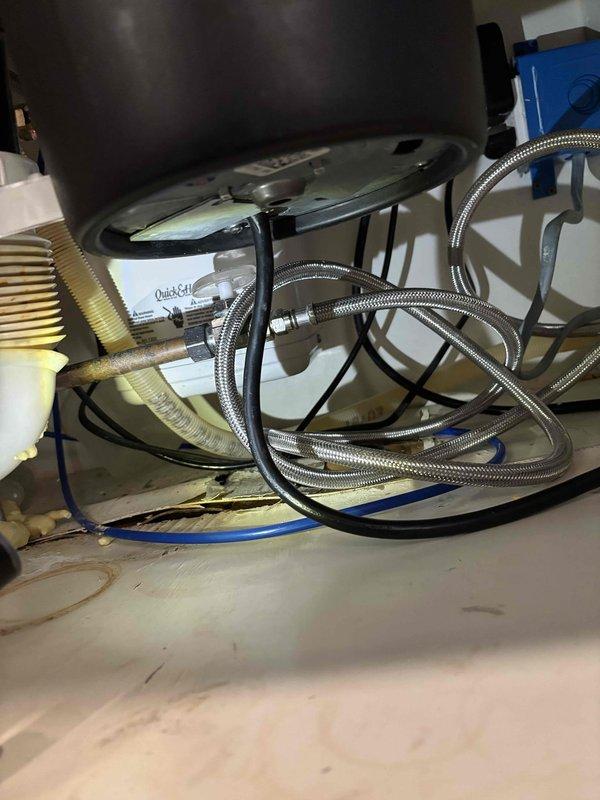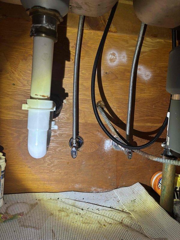 Tucker, GA - Conducted free estimate for kitchen faucet replacement. Tested water pressure at exterior spigot, finding elevated reading of approximately 100 PSI. Inspected existing under-sink plumbing configuration, noting functional drain assembly and braided supply lines with some evidence of previous moisture exposure on cabinet wood surfaces. Tucker, GA - Conducted free estimate for kitchen faucet replacement. Tested water pressure at exterior spigot, finding elevated reading of approximately 100 PSI. Inspected existing under-sink plumbing configuration, noting functional drain assembly and braided supply lines with some evidence of previous moisture exposure on cabinet wood surfaces.