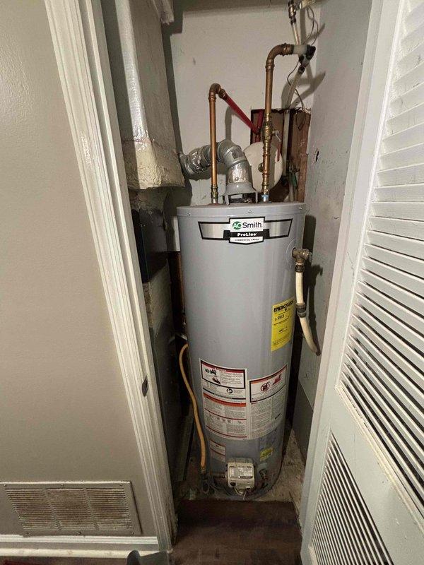 Diagnosed A.O. Smith 70-gallon gas water heater with no hot water output. Determined pilot light would not remain lit due to failed thermocouple; replaced thermocouple assembly, cleaned burner assembly, and verified proper ignition and operation. Unit now functioning correctly with appropriate hot water recovery.