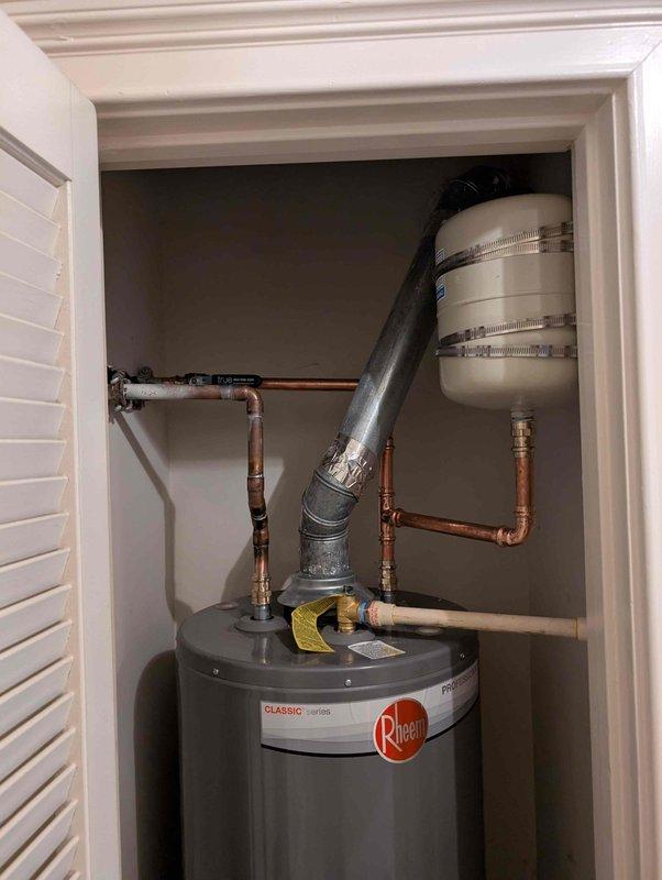 Atlanta, GA - Successfully installed a new 40-gallon Rheem Classic water heater in residential utility closet. Completed proper connection of all copper supply lines, expansion tank, and ventilation pipe. Installation verified to be in good working order with no leaks detected. Atlanta, GA - Successfully installed a new 40-gallon Rheem Classic water heater in residential utility closet. Completed proper connection of all copper supply lines, expansion tank, and ventilation pipe. Installation verified to be in good working order with no leaks detected.