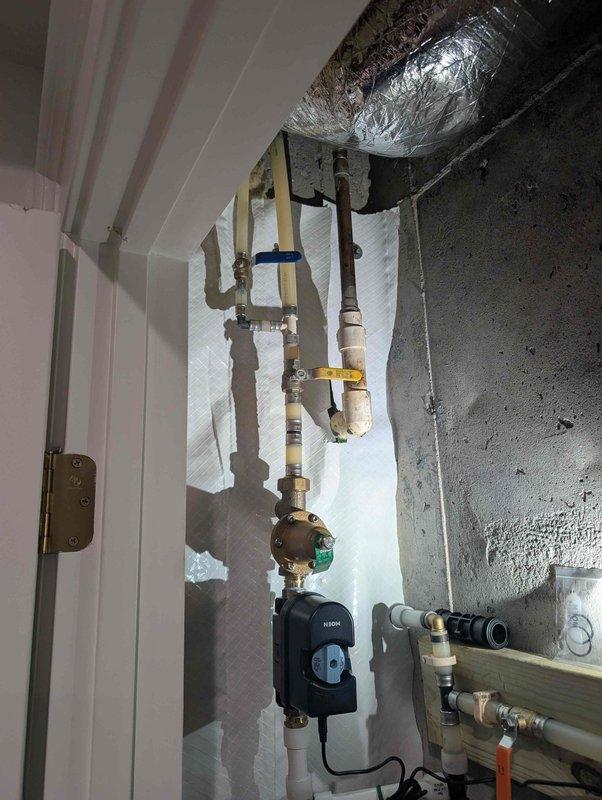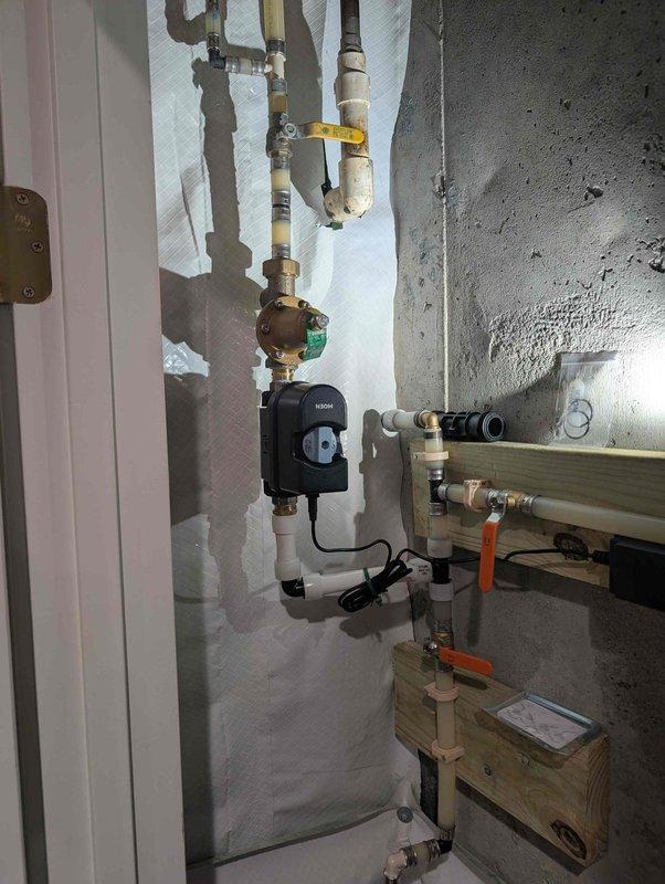 Atlanta, GA - Conducted on-site assessment for potential installation of Moen Flo smart water monitoring system. Evaluated current plumbing configuration, including existing brass valve assembly, PVC piping, and connection points to determine optimal placement and compatibility requirements for the Moen Flo device. Photos taken of installation area for detailed quote preparation.