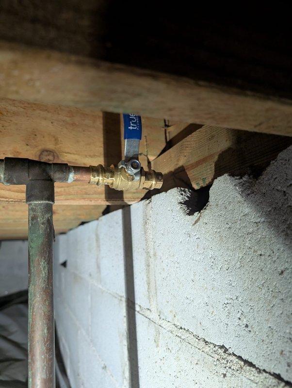Conducted on-site assessment for potential installation of Moen Flo smart water monitoring system. Evaluated current plumbing configuration, including existing brass valve assembly, PVC piping, and connection points to determine optimal placement and compatibility requirements for the Moen Flo device. Photos taken of installation area for detailed quote preparation.