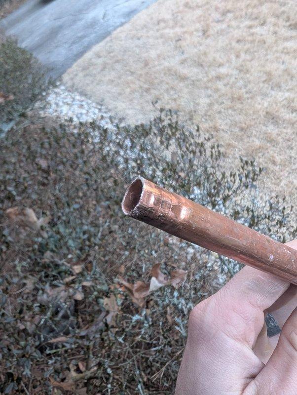 Atlanta, GA - Inspected customer concern regarding excessive protrusion of previously installed hose bib. Examined the copper piping configuration at shutoff valve location and verified installation integrity. Customer was shown the standard extension length of the copper pipe, which was properly installed according to industry specifications, not the 20 ft claimed by customer. Atlanta, GA - Inspected customer concern regarding excessive protrusion of previously installed hose bib. Examined the copper piping configuration at shutoff valve location and verified installation integrity. Customer was shown the standard extension length of the copper pipe, which was properly installed according to industry specifications, not the 20 ft claimed by customer.