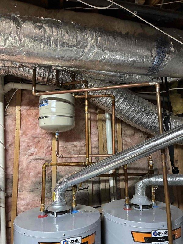 Atlanta, GA - Successfully installed new pressure reducing valve (PRV) and thermal expansion tank as per approved quote specifications. Visual inspection confirmed proper installation of components on the copper pipe system, ensuring compliance with plumbing codes and optimal water pressure regulation.