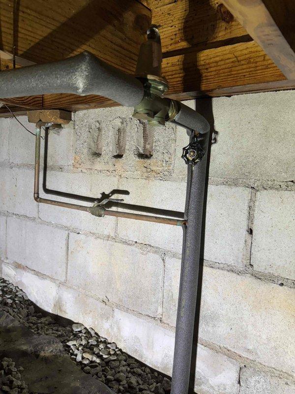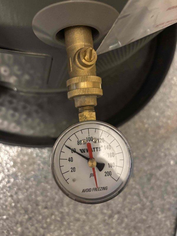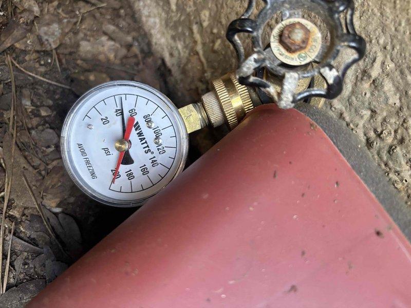Diagnosed high water pressure condition in residential plumbing system, with gauge reading approximately 100-120 PSI (exceeding normal residential range). Inspected copper pipe installation and surrounding infrastructure for any damage or leaks resulting from excessive pressure. Recommended installation of pressure reducing valve to maintain safe operating pressure and prevent potential damage to appliances and plumbing fixtures.