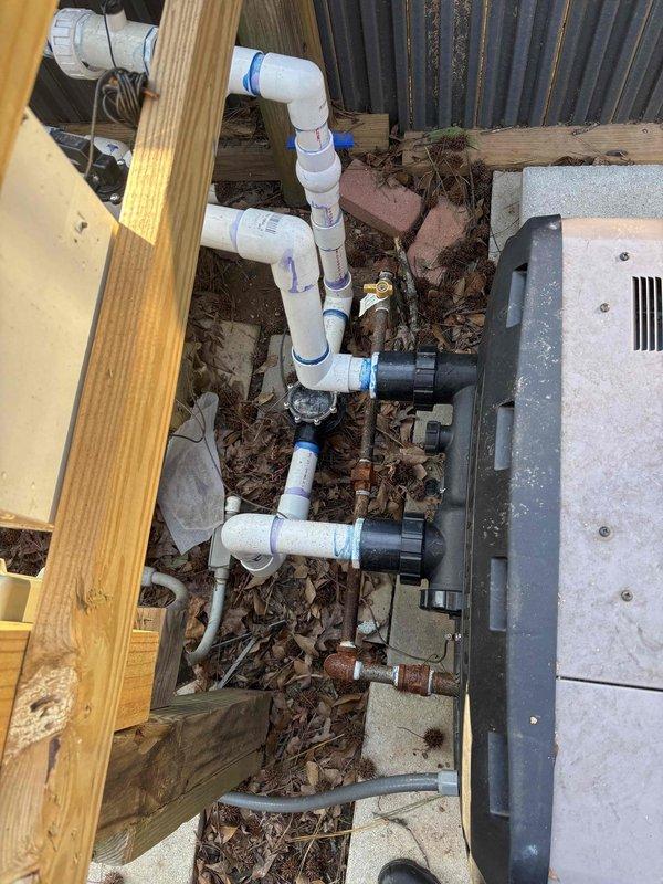 Replaced undersized gas line to pool heater with properly sized piping to ensure adequate gas flow and optimal heater performance. Installed new connections at both the meter and equipment side with appropriate fittings and valves. System was tested for leaks and proper operation after installation.