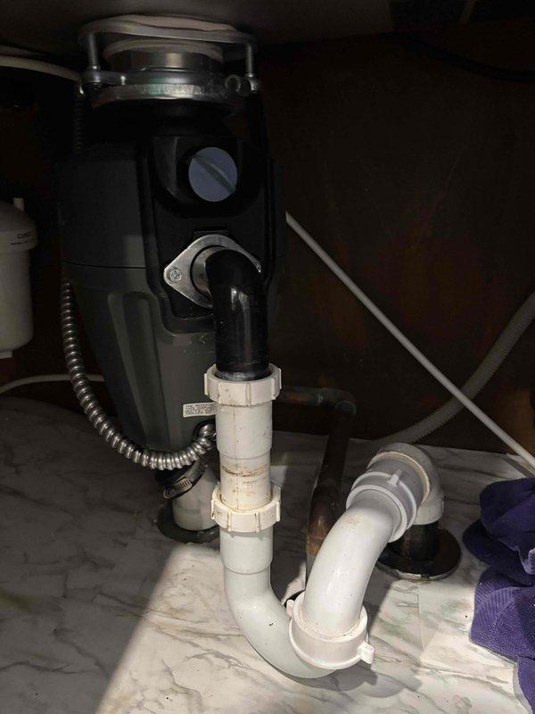 Responded to service call for dual plumbing issues. Repaired leak at garbage disposal mounting collar where unit connects to sink basin, ensuring proper sealing. Located and addressed secondary leak in basement plumbing beneath tub, resolving water intrusion problem.