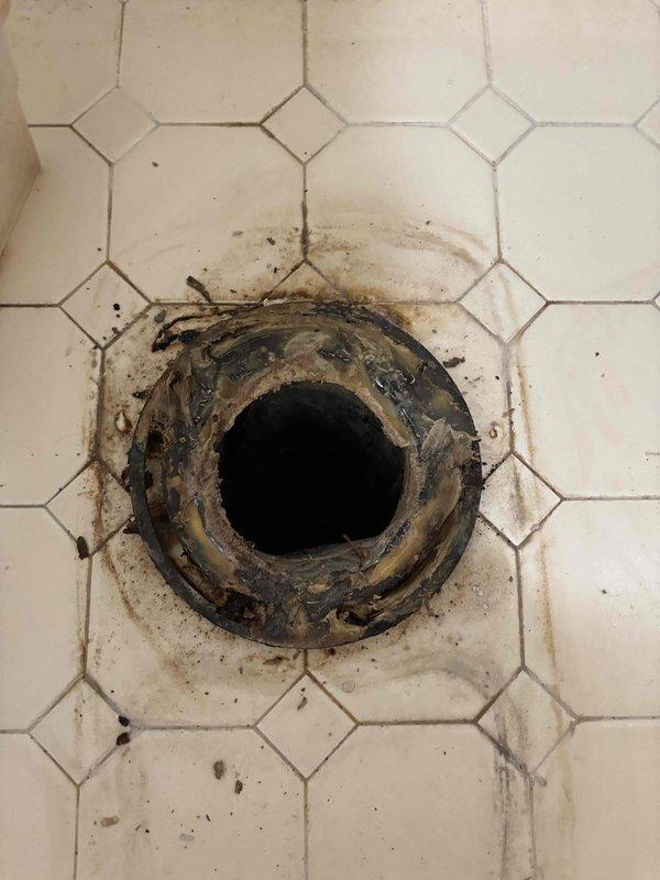 Responded to service call for first floor toilet with multiple issues including clogging, overflow, and instability. Cleared blockage from drain line using auger and restored proper drainage function. Tightened loose toilet base bolts and installed new wax ring to eliminate wobble and prevent future leakage.
