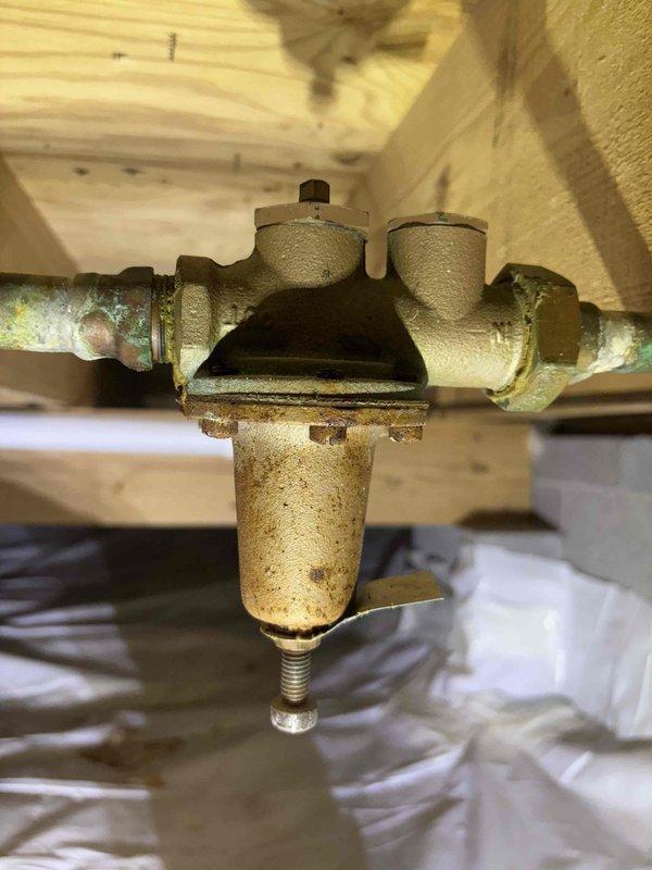Responded to clogged dishwasher drain issue and accessed crawl space to inspect drainage system. Located and serviced the dishwasher drain connection at the brass valve assembly beneath the floor structure, clearing the obstruction from the drainage line. Verified proper water flow through the system and confirmed all connections were secure and functioning correctly.