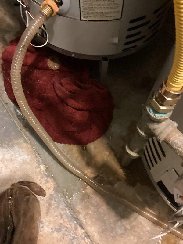 Responded to customer complaint of brown hot water from Rheem Performance standard water heater. Performed visual inspection of unit and plumbing system, noting copper pipes showing significant oxidation and sediment buildup. Flushed water heater tank to remove accumulated sediment causing discoloration, cleaned inlet screen, and verified proper operation of temperature/pressure relief valve. System now producing clear water with normal flow and temperature.
