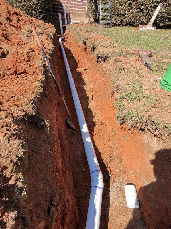 Completed sewer line replacement involving excavation of trench through residential yard and installation of new PVC piping. Project included proper trenching through clay-rich soil, placement of replacement piping with appropriate jointing, and all necessary connections to restore sewer functionality as specified in Quote 260303-005654.
