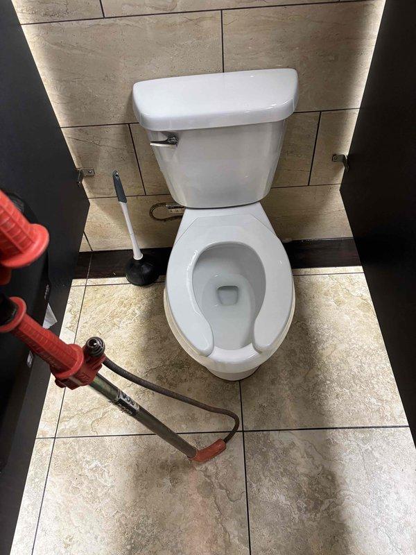 Responded to clogged toilet service call and successfully cleared the blockage using a combination of plunger and auger techniques. Toilet was restored to normal working condition with proper flushing capability verified after service completion.