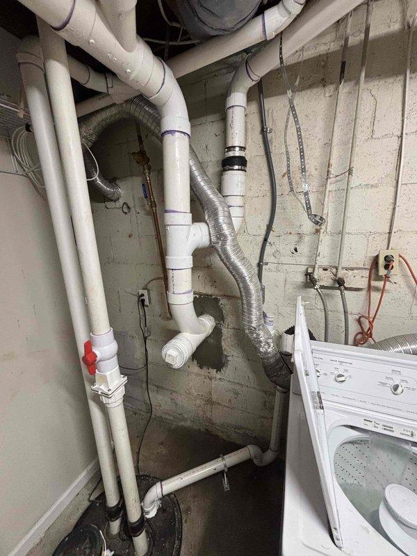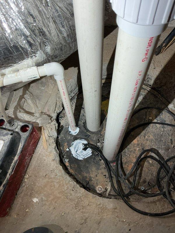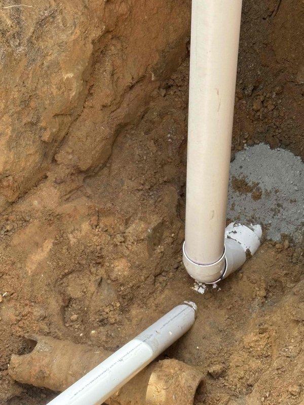 Completed excavation work to access and install new PVC drainage piping as detailed in Quote 260309-005674. Trenching was performed using mini-excavator to proper depth, with vertical and horizontal PVC connections properly installed in the utility area adjacent to existing plumbing and ventilation systems.