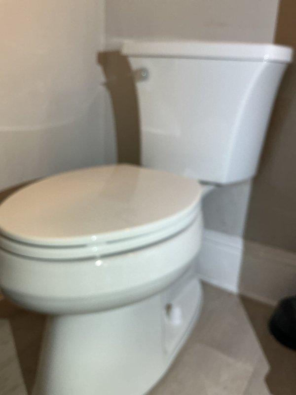 Successfully installed customer-supplied two-piece toilet in bathroom corner location. Verified proper mounting to floor, secure tank-to-bowl connection, and leak-free water supply connection. Unit is functioning correctly with no issues observed during final testing.