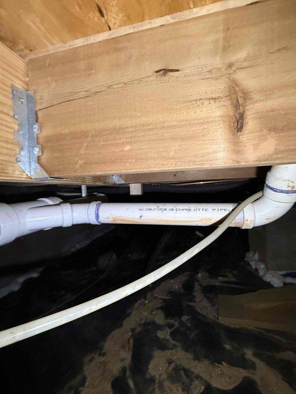 Responded to customer report of gurgling toilet. Conducted visual inspection of plumbing system, including crawl space drainage lines and waste pipe configuration. Documented existing PVC drain line routing and connections beneath structure. Provided quote for video scope inspection if needed to diagnose potential blockage or venting issue causing gurgling symptoms.