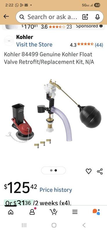 Diagnosed internal toilet mechanism failure. Identified appropriate replacement part (Kohler 84499 Float Valve Retrofit Kit) for repair. Documented damage with photos and provided customer with replacement options.