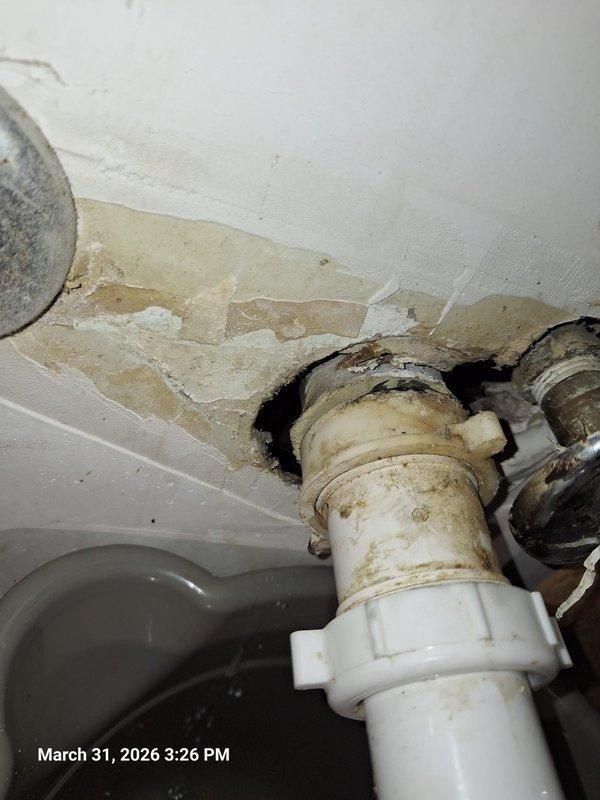 Responded to service call for leaking sink drain. Upon inspection, discovered deteriorated P-trap assembly with compromised connections causing water leakage beneath the basin. Replaced worn PVC fittings and P-trap components, ensuring proper seal at all connection points. Addressed existing water damage to surrounding cabinet area caused by prolonged moisture exposure. Tested drainage system under full flow to verify leak elimination and proper function.